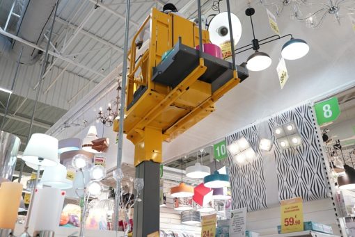 Šis vertikalus stiebinis keltuvas su prekių surinkimo padėklu idealiai tinka parduotuvių ir logistikos sektoriams: užsakymų ruošimui, atsargų valdymui, lentynoms, dekoravimui prekybos vietose ir kt.