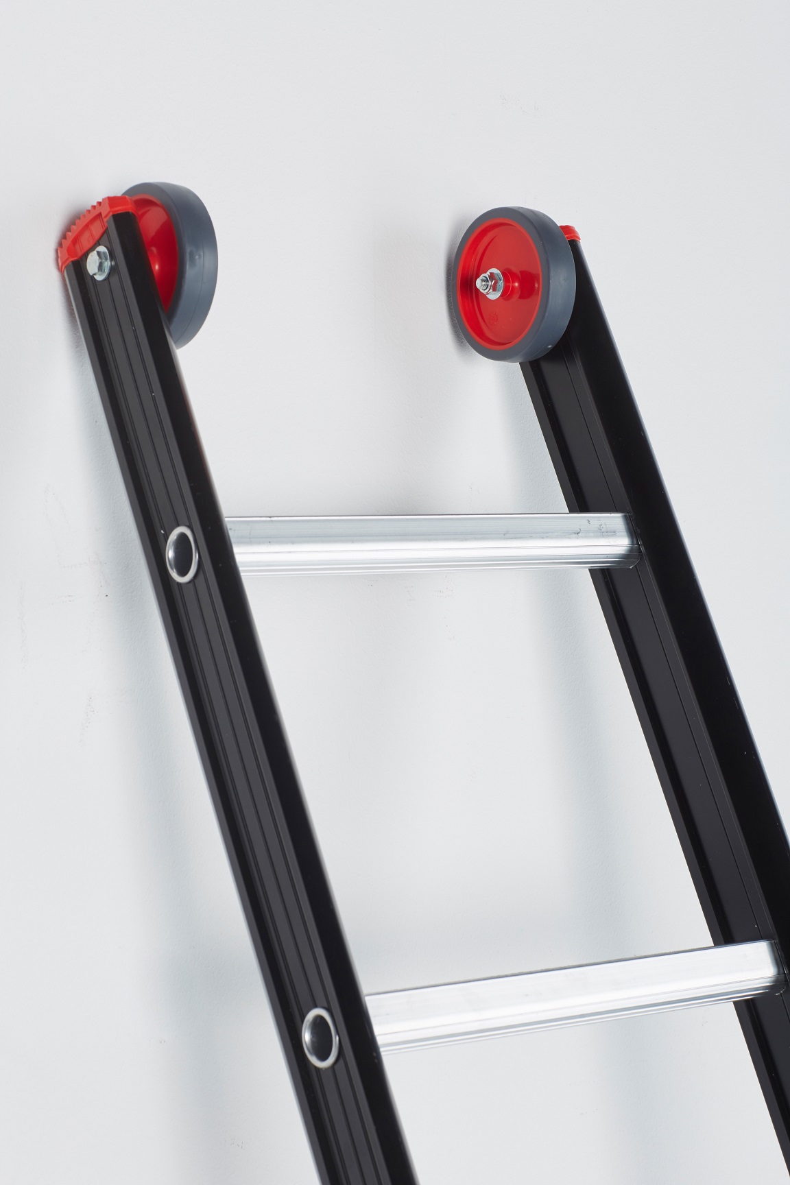 Kopėčias lengva įstumti ir išstumti naudojant automatiškai užsifiksuojančius kablius ir ratukus kopėčių galuose.