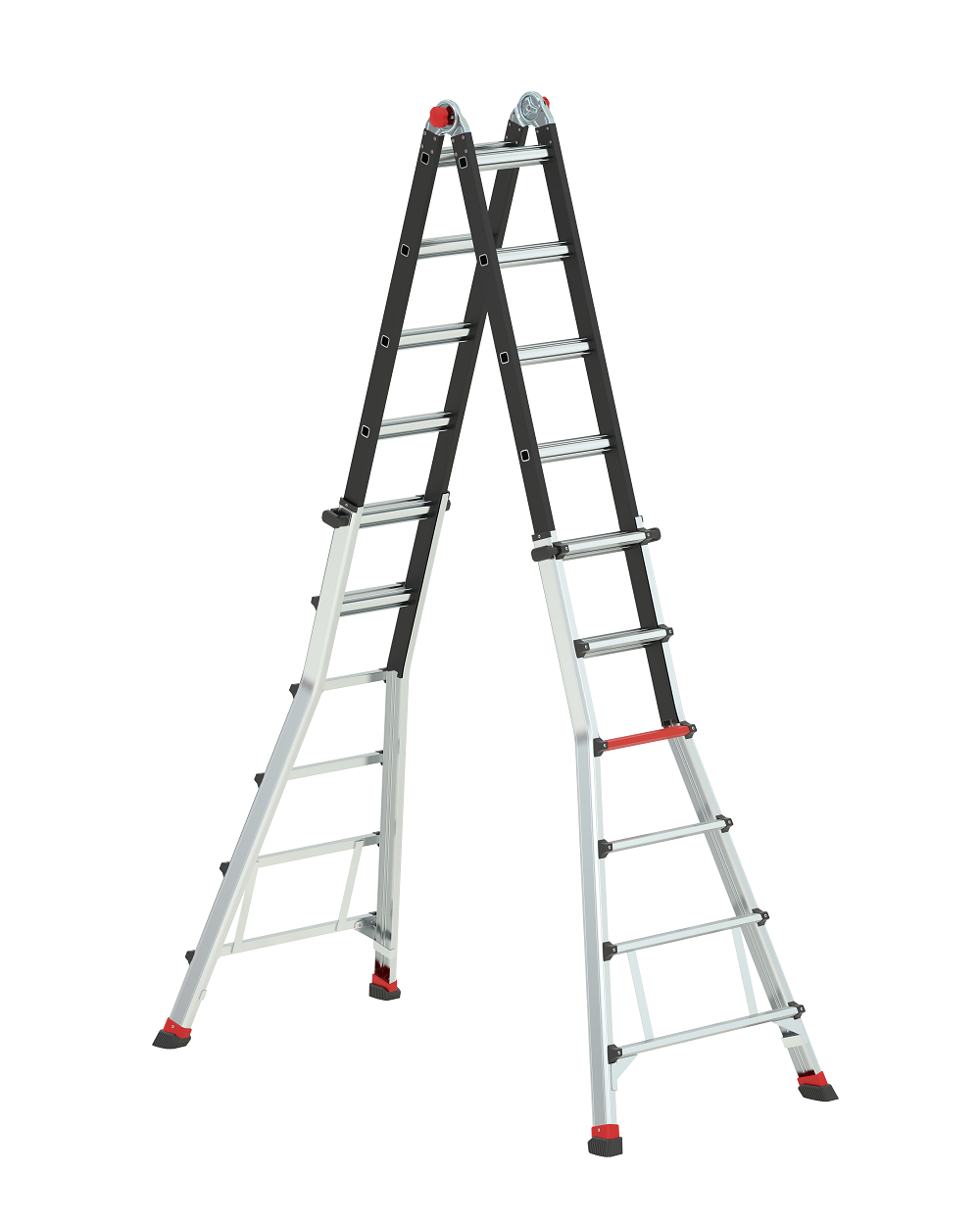 Dėl tvirtų lenktų sijų su neslystančiomis kojelėmis visada kopėčios bus stabilios. Ergonomiškais fiksatoriais galite lengvai reguliuoti sulankstomas kopėčias į norimą padėtį.