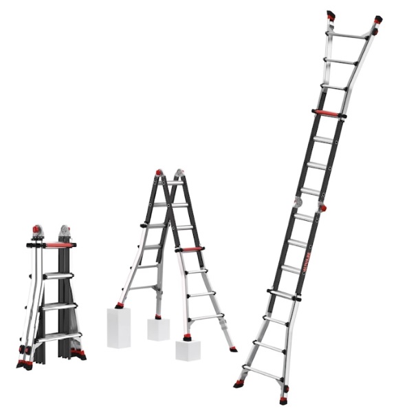 Vartrex Tele PRO+ kopėčias galite akimirksniu pastatyti į A padėtį (laisvai stovinčias), kaip atremiamas kopėčias, ir kaip įviarios modifikacijos 4×3, 4×4, 4×5, 4×6.