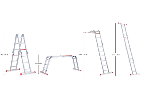 „Varitrex Plus“ – tai universalios sulankstomos, daugiafunkcinės, 4-ių padėčių kopėčios.